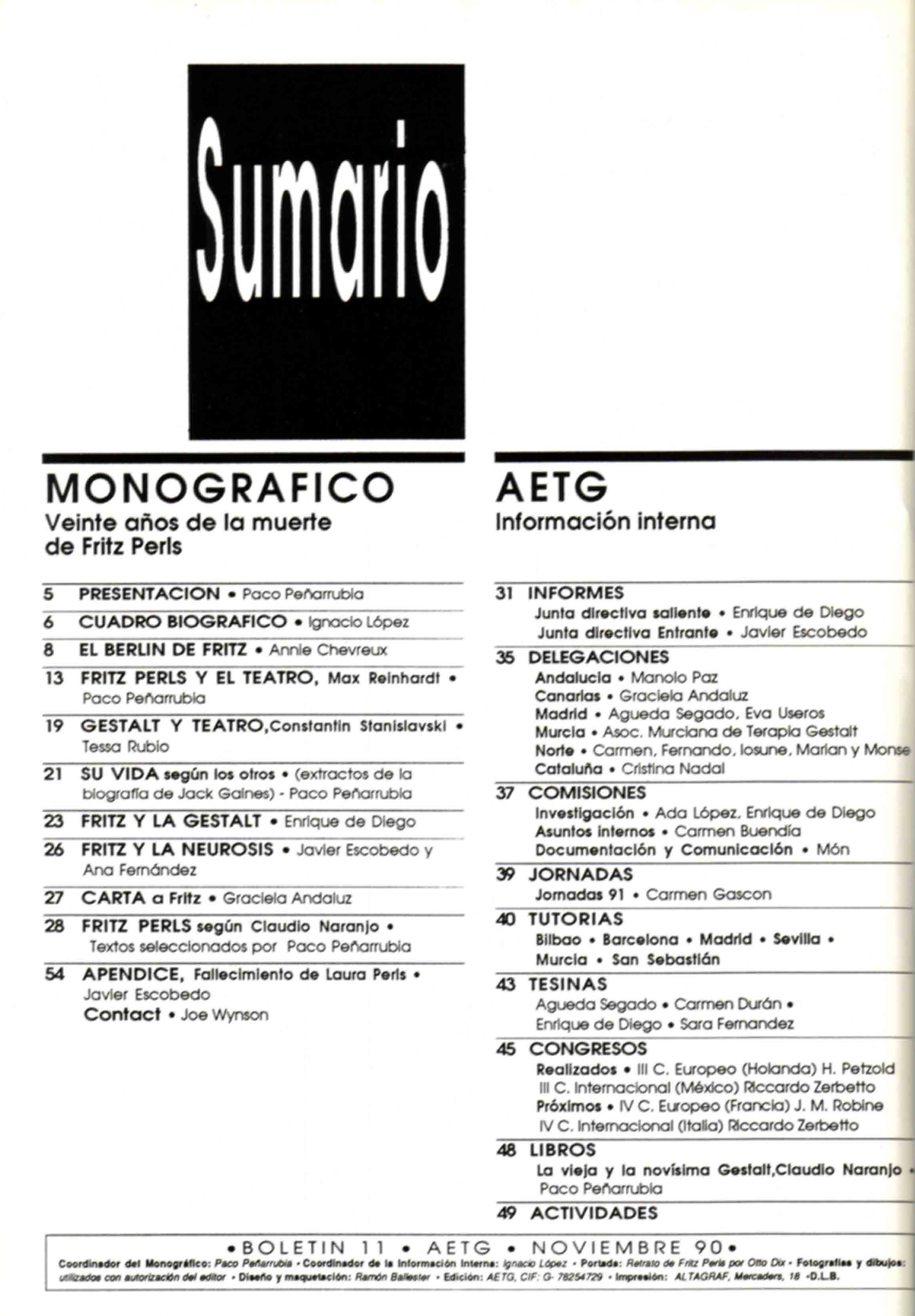 Boletín nº 11. Fritz Perls. 1970-1990: veinte años de su muerte (1990)